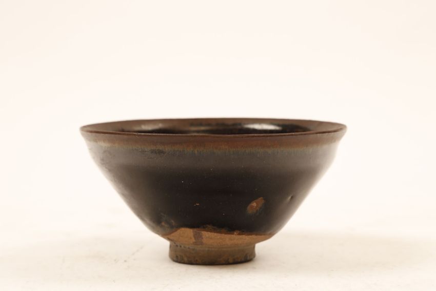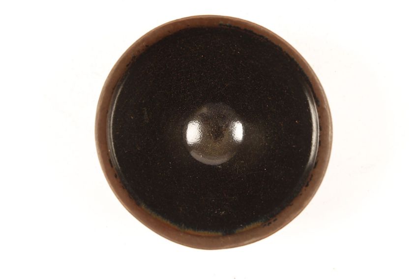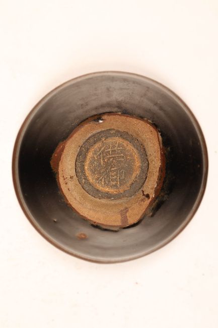 A CHINESE JIAN HARE FUR GLAZED TEA BOWL.Song Dynasty.Covered in a thick russet and black streaked glaze, gongyu (Imperial tribute) mark, 6.5cm H, 12.5cm diameter.?   ???????
