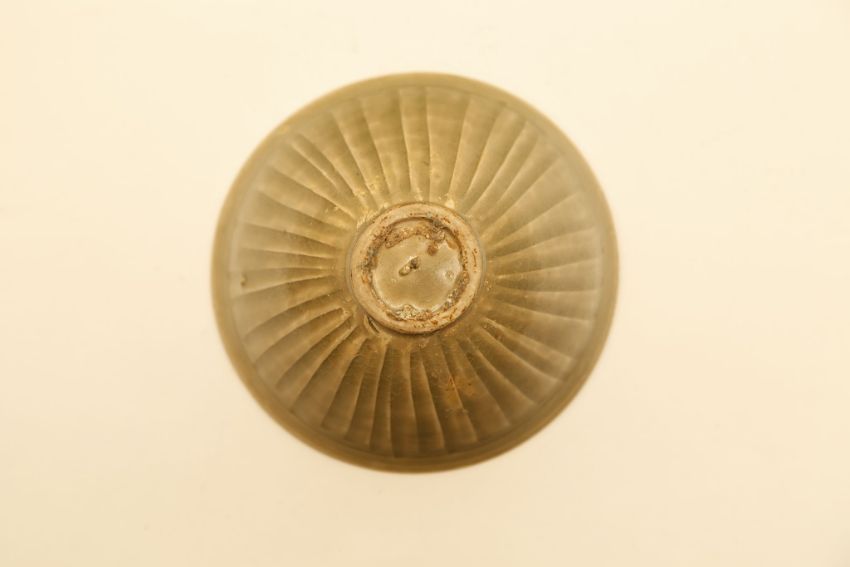 A CHINESE YAOZHOU TEA BOWL.Song Dynasty.The interior moulded with six peony blossoms borne on an undulating stem of fine scrolling leaves, the exterior of the conical bowl carved with a band of narrow petals rising from the small ring foot, 5.5cm H, 13cm diameter. Provenance: from the Jan and Nelly Szibner Collection.?   ?????????