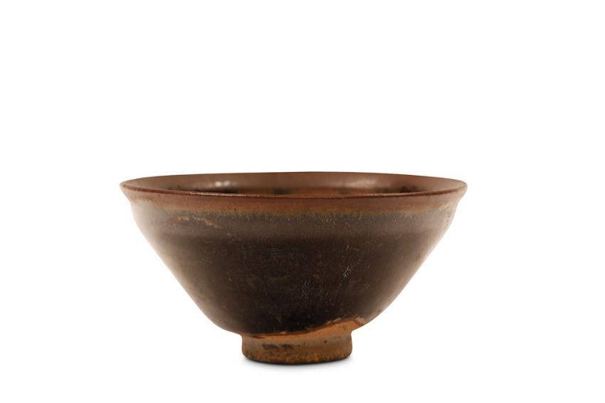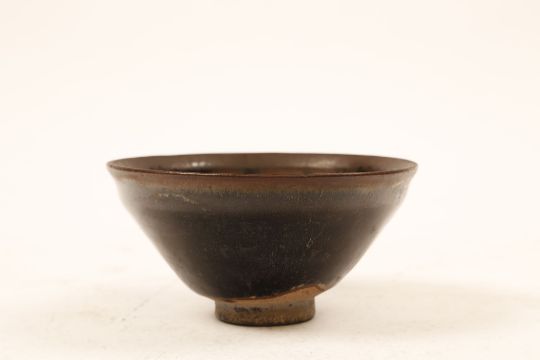 A CHINESE JIAN HARE FUR GLAZED TEA BOWL.Song Dynasty.Covered in a thick russet and black streaked glaze, gongyu (Imperial tribute) mark, 6.5cm H, 12.5cm diameter.?   ???????