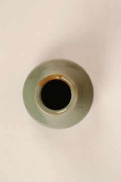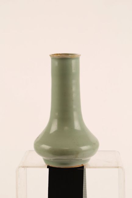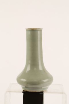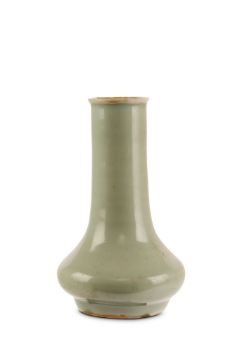 A CHINESE CELADON VASE.Song Dynasty. The pear-shape body rising from a short straight foot to a tall cylindrical neck and everted rim, 15.5cm H.Provenance: from the personal collection of Roger Bluett, thence by descent to the present owner.?   ?????
