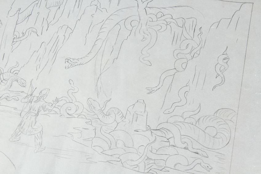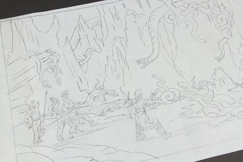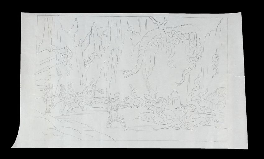 THE GOLDEN VOYAGE OF SINBAD (1973) - Ray Harryhausen Hand-Drawn Concept For The Valley of the Vipers
