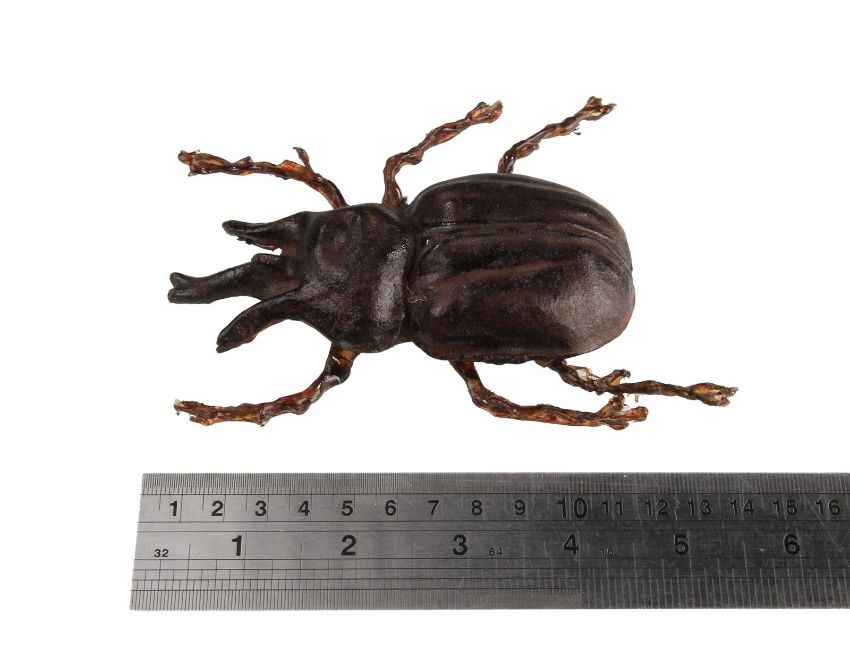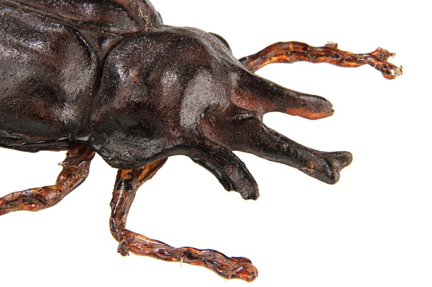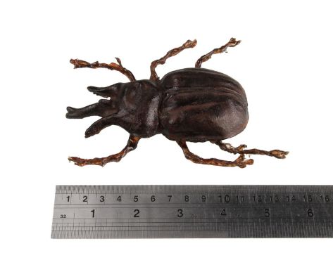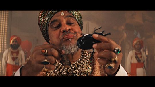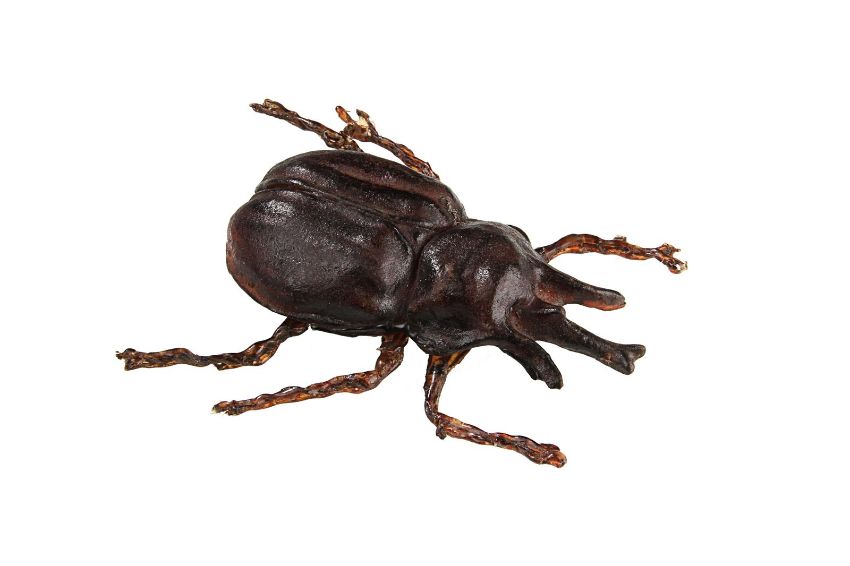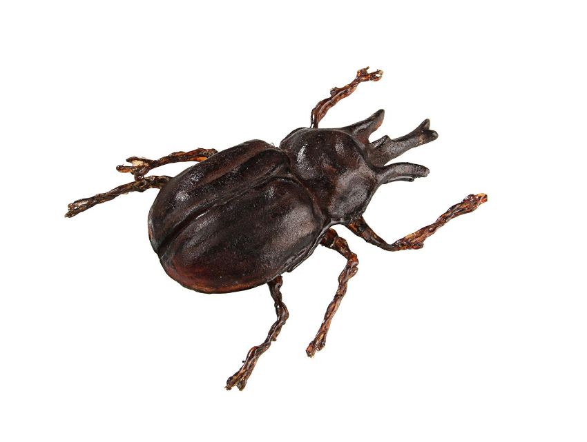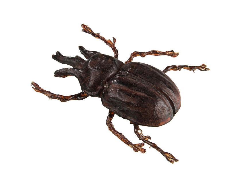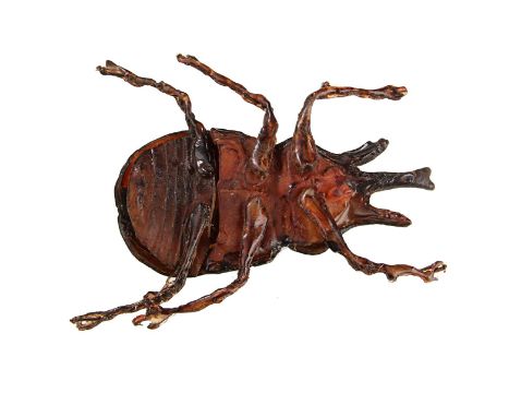 A banquet beetle from Steven Spielberg’s action adventure Indiana Jones and the Temple of Doom. Willie Scott (Kate Caps haw) and her companions were served the bugs during the infamous banquet scene, whilst Indiana Jones (Harrison Ford) attempted to solve the mystery surrounding Panko Palace and the missing children. Made from latex, the stag beetle features a shell, spindly legs and pincers, painted with a gloss black finish. The underside is painted in natural red tones, with a removable lower section secured with a strip of black Velcro. The beetle is fragile from age and production use. Dimensions: 14 cm x 11 cm x 3 cm (5 ½" x 4 ½" x 1 ¼") VAT Status - Margin TRIANGLE