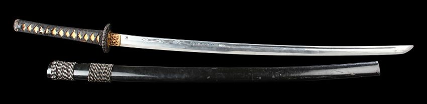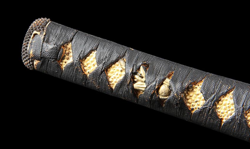 Katsumoto's (Ken Watanabe) hero katana from Edward Zwick’s war epic The Last Samurai. Katsumoto used his katana throughout the film as he fought the Japanese Imperial Army, first against, then alongside American Nathan Algren (Tom Cruise). Katsumoto ultimately took his own life with the sword, before being presented to Emperor Meiji (Shichinosuke Nakamura). The sword is made of aluminium, with a resin grip designed to look like wood, bound in cloth and an ornate plastic guard. The blade is blunted to prevent injury to performers. A blood groove runs along the length of the left-hand side of the blade, while the right-hand side’s groove is broken by an array of engraved symbols. The grip is finished in black and white with faux-gold accents. The piece is retained in a resin scabbard finished in black, bound in black and white rope. The sword exhibits some wear from production use, including chips in the paint finish and mud on the scabbard from use on the battlefield. Sheathed dimensions: 102 cm x 7.5 cm x 6.5 cm (40 ¼" x 3" x 2 ½") VAT Status - Margin