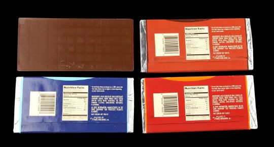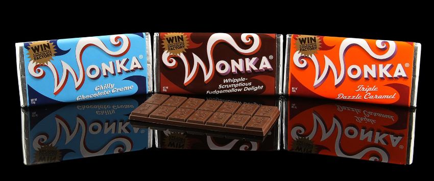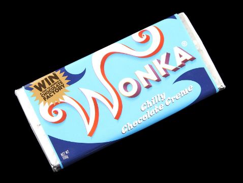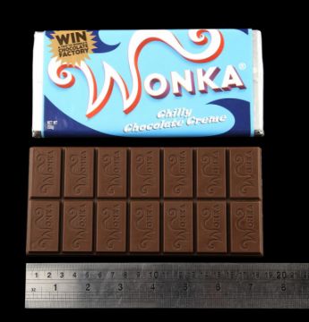 A set of Wonka bars from the fantastical adaption of Charlie and the Chocolate Factory directed by Tim Burton. Wonka bars were used during early scenes as people around the world frantically hunted for the five elusive Golden Tickets. The set is comprised of an unwrapped Wonka bar and three wrapped Wonka bars, including a Whipple-Scrumptious Fudgemallow Delight, Chilly Chocolate Creme and a Triple Dazzle Caramel. Each bar is made of brown plastic and features a 'Wonka' stamp on the individual chocolate pieces. The bars are wrapped in silver foil with colourful wrappers featuring a printed seal reading "Win a trip to Wonka's Chocolate Factory", and the back of the wrapper shows printed nutritional facts and ingredients. Each bar remains in very good condition. Dimensions (per bar): 19 cm x 9 cm x 1.5 cm (7 ½" x 3 ½" x ¾")This lot is supplied with a Warner Bros. certificate of authenticity in place of a Prop Store certificate. Payment plan on this item is restricted to a duration of one month. Please contact us for further information. VAT Status - DAGGER