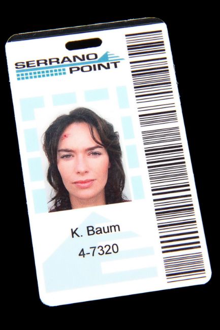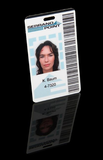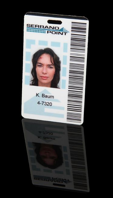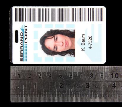 Sarah Connor’s (Lena Headey) photo ID from the Emmy®-nominated sci-fi television series Terminator: The Sarah Connor Chronicles. Connor wore her ID during the second season whilst working at the Serrano Point nuclear power plant, as she and Cameron Phillips (Summer Glau) attempted to prevent the reactivation of the plant and protect the future of the Resistance. The laminated ID features the Serrano Point logo, a barcode and a photograph of Connor. The ID displays the Connor family pseudonym "K Baum", a reference to The Wonderful Wizard of Oz author L. Frank Baum, a novel which is mentioned throughout the series. Dimensions: 9.5 cm x 5.5 cm (3 ¾" x 2 ¼"). VAT Status - Margin