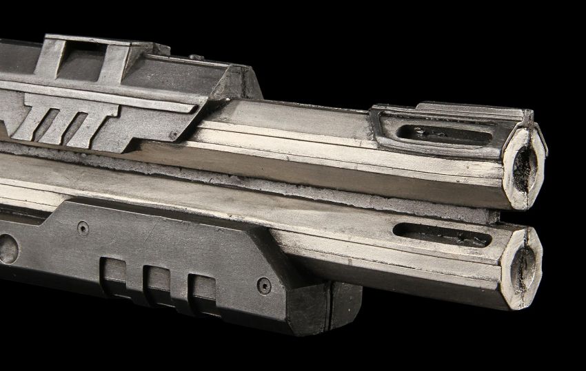 Stinger Apini's (Sean Bean) stunt rifle from the sci-fi adventure film Jupiter Ascending, directed by The Wachowskis. Apini used his weapon when Caine Wise (Channing Tatum) and Jupiter Jones (Mila Kunis) arrived at his residence seeking help and shelter. The weapon is constructed entirely from urethane rubber, painted metallic grey with black highlights to give an aged and used appearance. It has two barrels in an over/under configuration, and the body is detailed with assorted greeblies cast into the form to enhance the high-tech feel. It remains in very good condition. Dimensions: 61 cm x 20 cm x 5 cm (24" x8" x 2")This lot is supplied with a Warner Bros. certificate of authenticity in place of a Prop Store certificate. Payment plan on this item is restricted to a duration of one month. Please contact us for further information. VAT Status - DAGGER