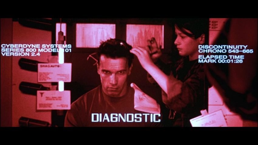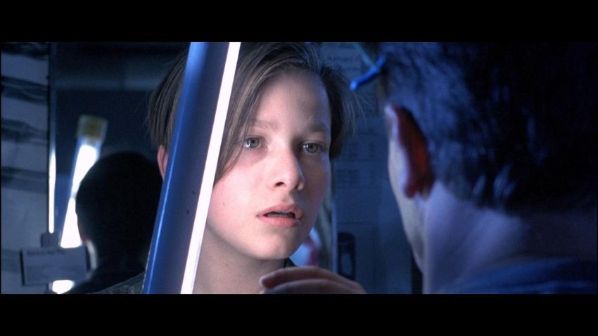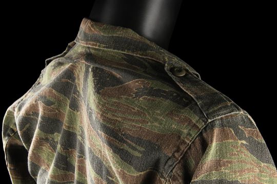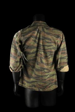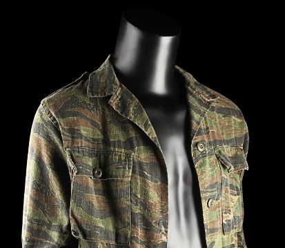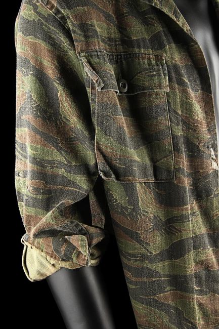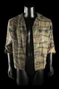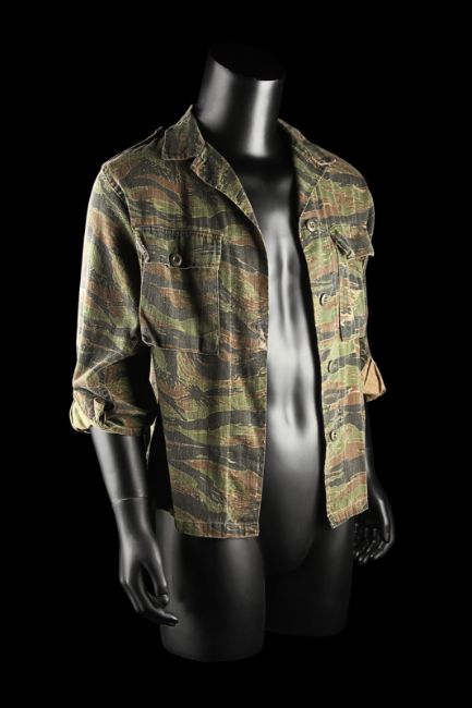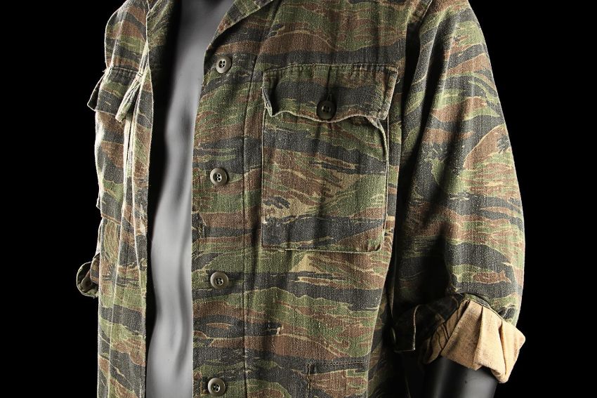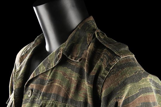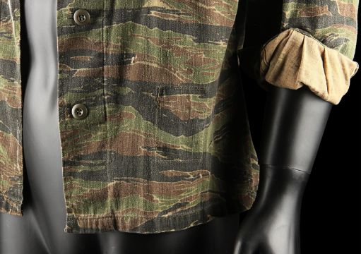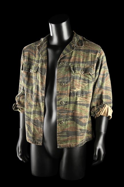 John Connor's (Edward Furlong) shirt from James Cameron’s sci-fi action film Terminator 2: Judgment Day. John wore his shirt in a sequence from the Director’s Cut, in which the Terminator (Arnold Schwarzenegger) has its CPU modified to allow it to learn new behaviour. The sequence utilised multiple mirror shots, which were achieved using both the main cast and stand-ins, with this shirt worn by John when seen in the mirror’s reflection. The shirt, marked size extra small-long, is made in distinctive tiger stripe camouflage with epaulettes and two pockets on the chest. The buttons, normally on the right side of the shirt, have been intentionally stitched on the left-hand side to create the reflection effect during shooting. The cuffs of the shirt have been rolled and stitched in place, ensuring they remain at three-quarter length. Dressed down for use with only minor wear, the shirt is in very good condition. VAT Status - Margin TRIANGLE