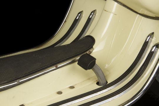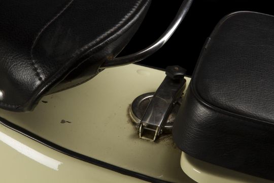 Napoleon Solo's (Henry Cavill) Vespa scooter from the action-comedy The Man from U.N.C.L.E., directed by Guy Ritchie. The CIA agent rode his scooter through the streets of Rome early in the movie as he, Illya (Armie Hammer) and Gaby (Alicia Vikander) began their undercover assignment, including their dramatic chase through the Italian streets. The vehicle is a vintage Piaggio Vespa Large frame VBB 150 constructed in 1964. It was sprayed cream by the production and is decorated with a chrome and black trim. It has 10" wheels and a black faux-leather pillion passenger seat. There are two locked compartments on the front frame and left pannier (keys not included). The scooter remains in very good condition, with a functioning kick stand. Please note this vehicle is not registered for road use; there is no V5 log book. Dimensions: 173 cm x 102 cm x 71 cm (68" x 40 ¼" x 28")This lot is supplied with a Warner Bros. certificate of authenticity in place of a Prop Store certificate. Payment plan on this item is restricted to a duration of one month. Please contact us for further information. This vehicle is sold in non-functional ‘rolling only’ condition. It is drained of all fluids. As this item contains electronic components, every effort has been made to describe them accurately, however no guarantee or warranty is made as to the functionality or lifespan of those components. It is entirely incumbent on the new owner to satisfy themselves as to their use and maintenance. VAT Status - DAGGER