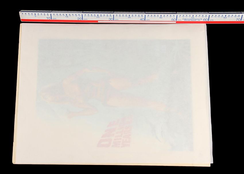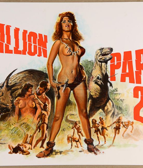 A photo of Tom Chantrell’s prototype poster artwork for One Million Years B.C. Part 2, with added painted embellishments in acrylic. This Hammer film was eventually released as When Dinosaurs Ruled the Earth (1970), the finished poster replicating this design but with title changed, cast/credits included and bras added. Chantrell has signed the work and it is accompanied by a letter of provenance from the Chantrell Archive. Dimensions: 46cm x 55 cm (18" x 21 ½") Please note this lot is sold without copyright, reproduction rights, licensing agreements or any other type of legal release. VAT Status - Margin