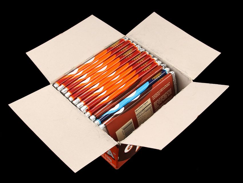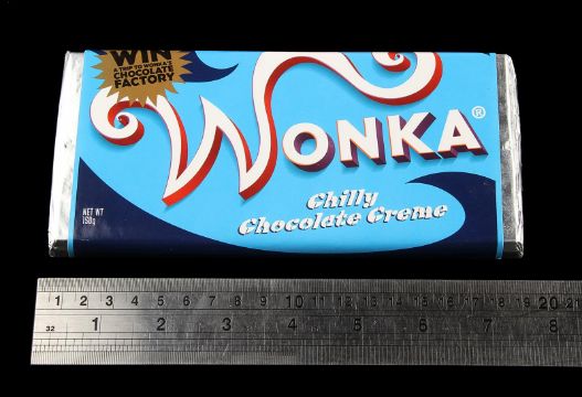 A box of Wonka bars from the fantastical adaption of Charlie and the Chocolate Factory directed by Tim Burton. Boxes of Wonka bars were used early in the film as people around the world embarked on a hunt for the five elusive Golden Tickets. The box itself is made from cardboard featuring four colourful sides each displaying the 'Wonka' logo. Inside the box are twelve wrapped Wonka bars including nine Triple Dazzle Caramel, two Whipple-Scrumptious Fudgemallow Delight and one Chilly Chocolate Creme. Each bar is made of brown plastic and features a 'Wonka' stamp on the individual chocolate pieces. The bars are wrapped in silver foil with colourful wrappers and feature a printed seal reading "Win a trip to Wonka's Chocolate Factory" and nutritional facts and ingredients on the back. The box displays slight scuffs to the corners due to use, however overall the set remains in very good condition. Dimensions(box): 19.5 cm x 17.5 cm x 9.5 cm (7 ½" x 6 ¾" x 3 ¾")This lot is supplied with a Warner Bros. certificate of authenticity in place of a Prop Store certificate. Payment plan on this item is restricted to a duration of one month. Please contact us for further information. VAT Status - DAGGER