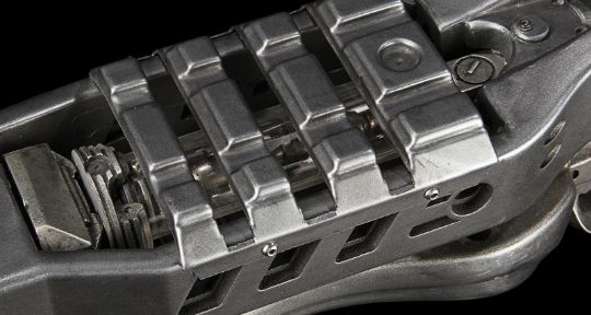 Caine Wise's (Channing Tatum) stunt Goose gun from the sci-fi adventure film Jupiter Ascending, directed by The Wachowskis. Wise used his weapon when the Triggers attacked Stinger Apini’s (Sean Bean) residence where they attempted to murder Earth’s matriarch Jupiter Jones (Mila Kunis). The large weapon is constructed from cast resin, painted metallic grey with a layer of black paint to allude to extensive age and use. An assortment of futuristic greeblies add to the high-tech appearance, including the modified stock and trigger. A clear acrylic cylinder houses static-finned shaft, protected with a vac-formed cover secured with rivets. It remains in very good condition. Dimensions: 79 cm x 29 cm13 cm (31" x 11 ½" x 5")This lot is supplied with a Warner Bros. certificate of authenticity in place of a Prop Store certificate. Payment plan on this item is restricted to a duration of one month. Please contact us for further information. VAT Status - DAGGER