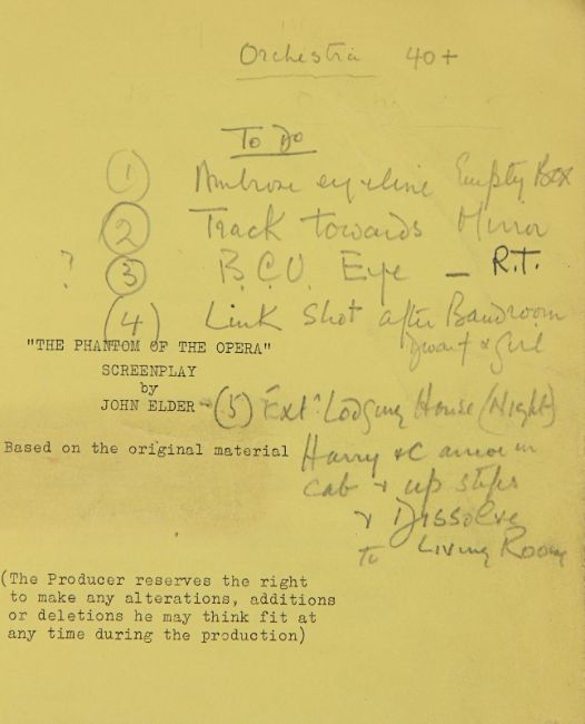 PHANTOM OF THE OPERA (1962) (1962) - Terence Fisher's Personal Shooting Script