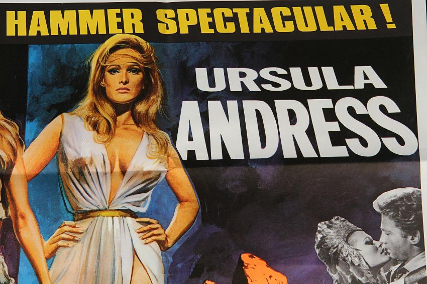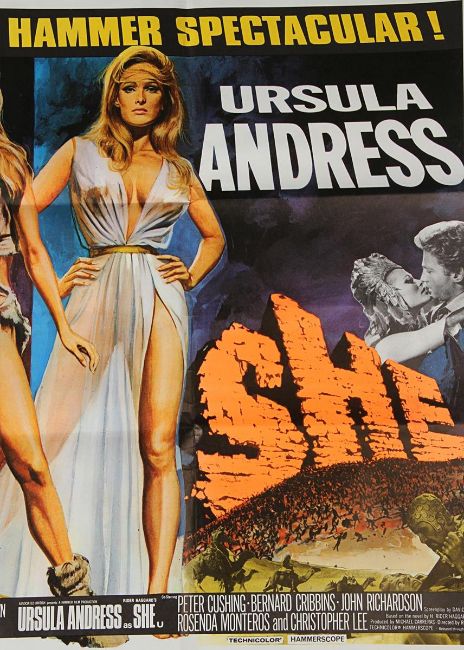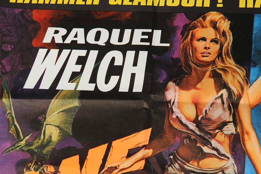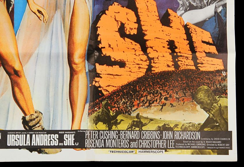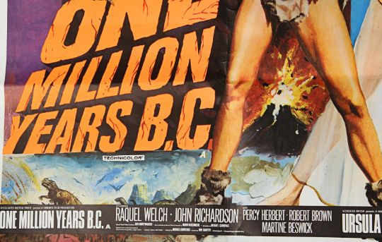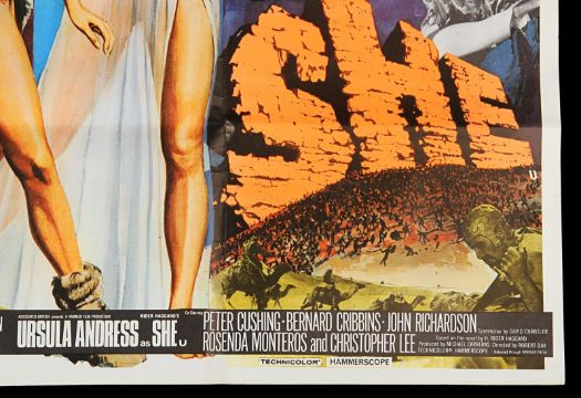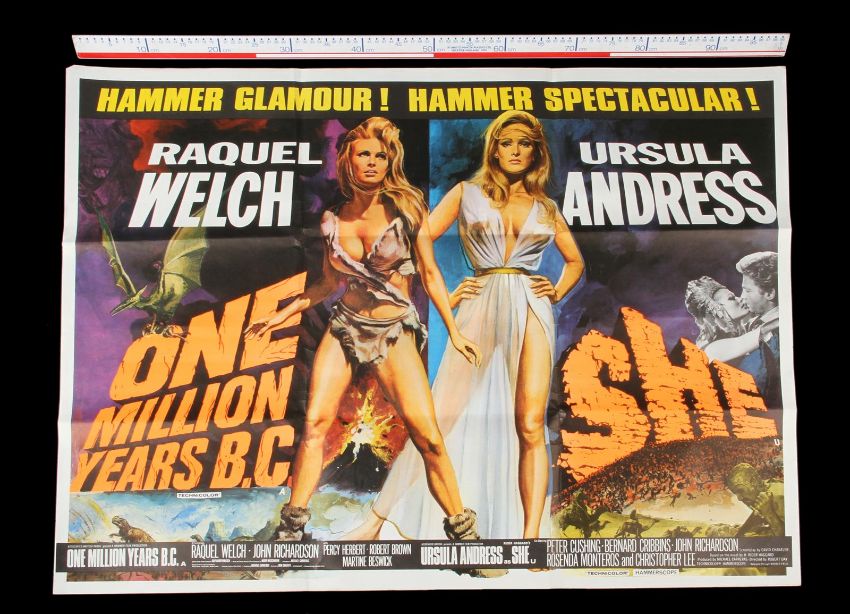 A UK Quad poster (G folded condition with creases at edges) from the Hammer Studios double-bill of One Million Years B.C. and She. The poster features Tom Chantrell’s artwork of two of the best-known sex sirens of 1960-70s, Raquel Welch and Ursula Andress and is accompanied by a letter of provenance from the Chantrell Archive. Dimensions: 76cm x 102 cm (30" x 40") VAT Status - Margin