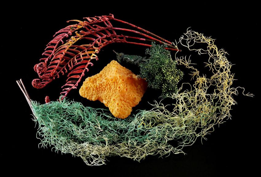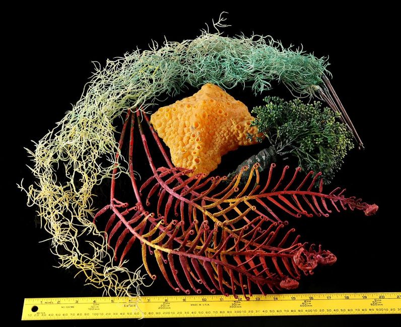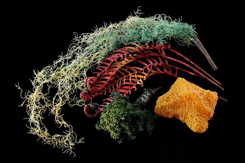 A set of kelp from Wes Anderson's comedy The Life Aquatic with Steve Zissou. Kelp was used to dress the fantastic underwater sets seen during Team Zissou's numerous oceanic adventures. This lot includes four wire red leafstalks, three strands of green kelp, a bush of dark green kelp, and a dense foam sea sponge. The collection has been painted by the production with bright vivid colours that play into Wes Anderson's focused colour palate. Theset shows minor wear due to production use, but remains in very good condition. Dimensions (as pictured): 38 cm x 20 cm x 18 cm(15" x 12" x 7") VAT Status - OMEGA
