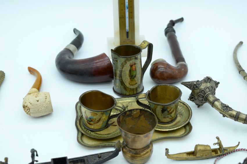 Vitrine à deux corps Höhe: ca. 263 cm. Breite: 145 cm. Tiefe: 60 cm. Nordfrankreich, 19. Jahrhundert. In Nussbaum gearbeiteter Unterkorpus mit pseudobarocker Schnitzreliefarbeit. Zwei Mitteltüren mit darüberliegendem Schubfach mit zwei Griffen, seitlich jeweils begleitet von einer Schwingtür und einem Schubfach. Aufsatz als zweitürige Vitrine mit bekrönendem Rocaillegiebel und Louis XVI-Ranken in plastischer Schnitzarbeit. Rest. (1221236) (1)