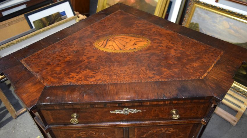 NEW Auction Vitrine à deux corps Höhe: ca. 263 cm. Breite: 145 cm. Tiefe: 60 cm. Nordfrankreich, 19. Jahrhundert. In Nussbaum gearbeiteter Unterkorpus mit pseudobarocker Schnitzreliefarbeit. Zwei Mitteltüren mit darüberliegendem Schubfach mit zwei Griffen, seitlich jeweils begleitet von einer Schwingtür und einem Schubfach. Aufsatz als zweitürige Vitrine mit bekrönendem Rocaillegiebel und Louis XVI-Ranken in plastischer Schnitzarbeit. Rest. (1221236) (1)