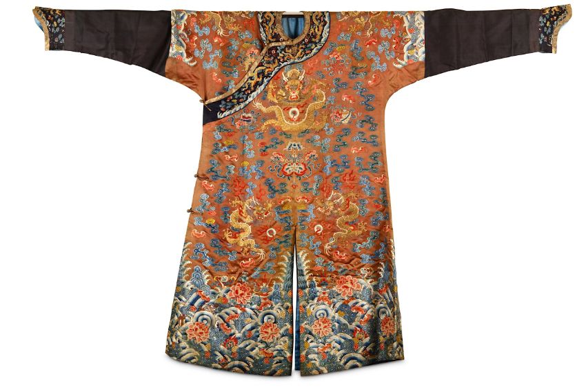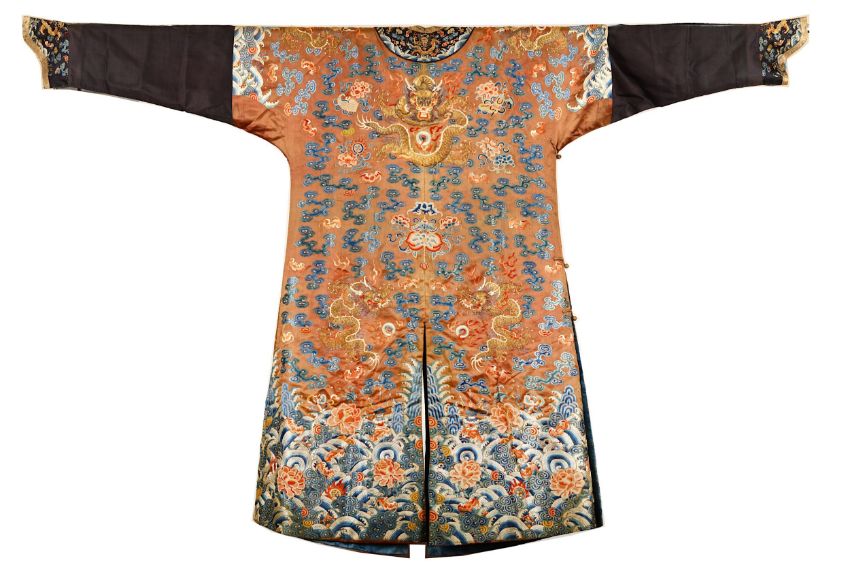 清 醬地繡龍紋吉服