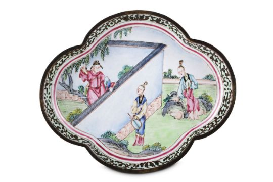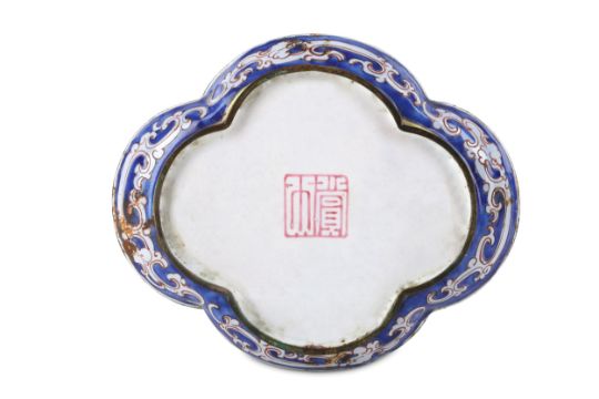 A SMALL CHINESE QUATREFOIL CANTON ENAMEL TRAY.