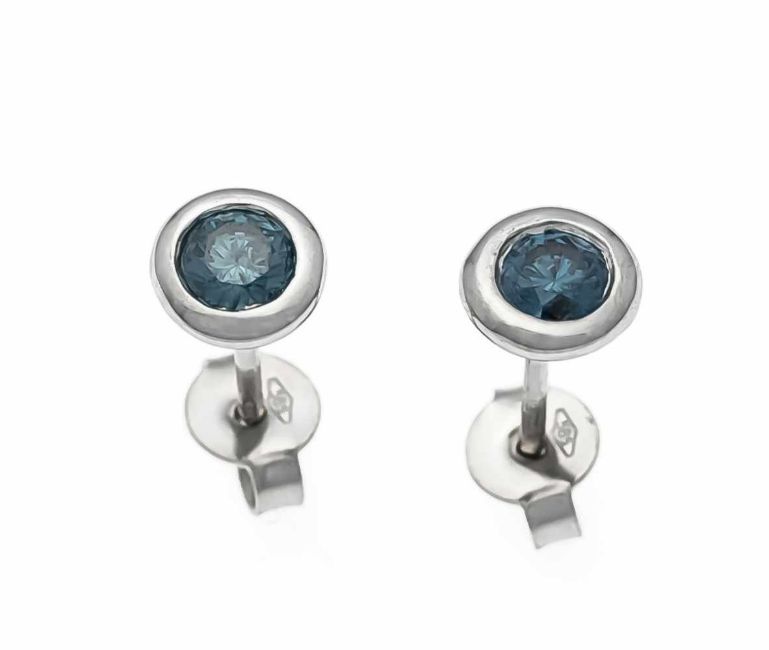 Brillant-Ohrstecker WG 585/000 mit 2 Brillanten, zus. 0,36 ct Fancy Intense Blue/PI, D. 6