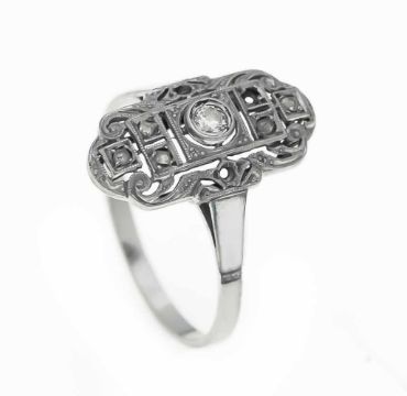 Art D‚co Ring WG 585/000 mit einem Altschliff-Diamanten 0,07 ct W/VS und Diamantrosen (3