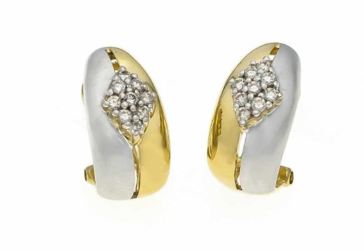 Brilliant clip ear plug GG / WG 585/000 with 18 diamonds, total 0.18 ct W / SI, L. 15 mm,