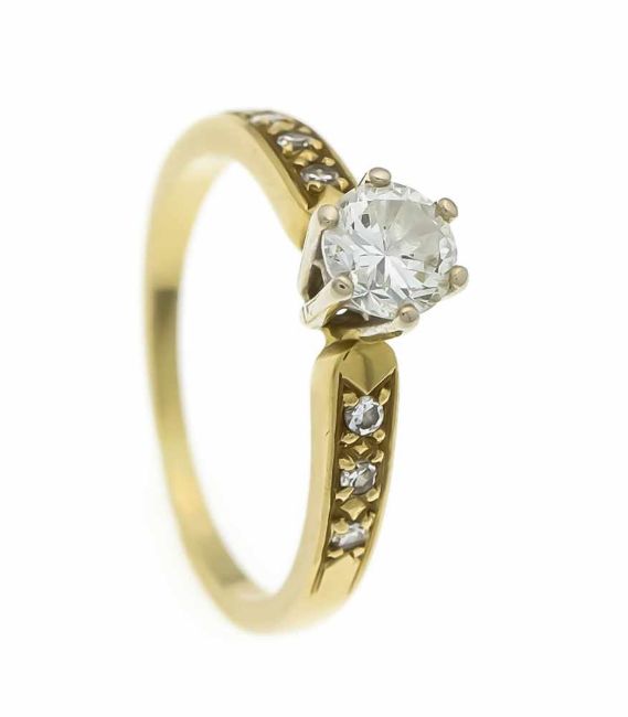 Brillant-Ring GG 750/000 mit einem Brillanten 0,65 ct l.get.W/VS und Diamanten, zus. 0,11