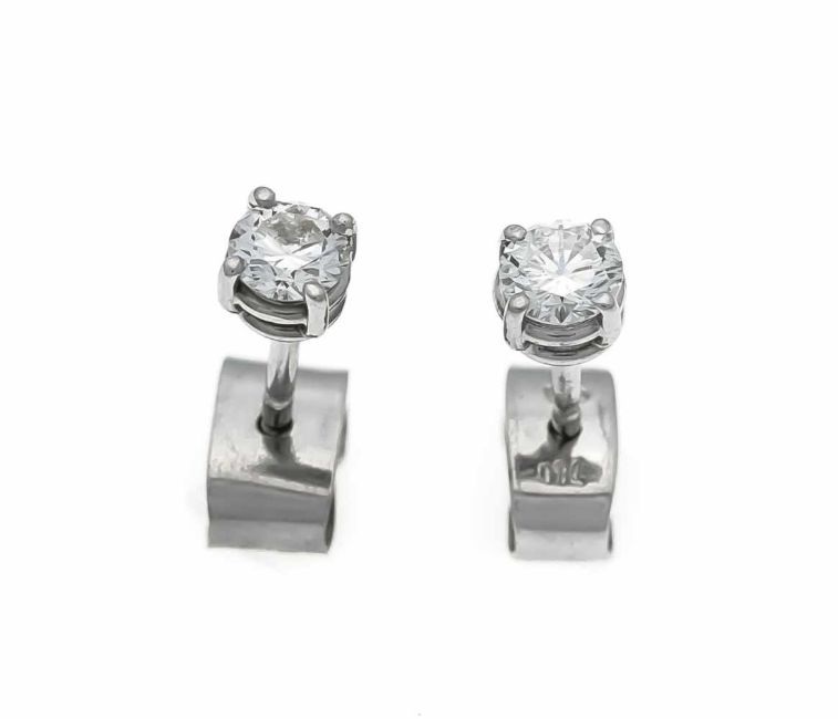Brillant stud earrings WG 750/000 with 2 brilliants, total 0.48 ct TW / SI, 1.7 g