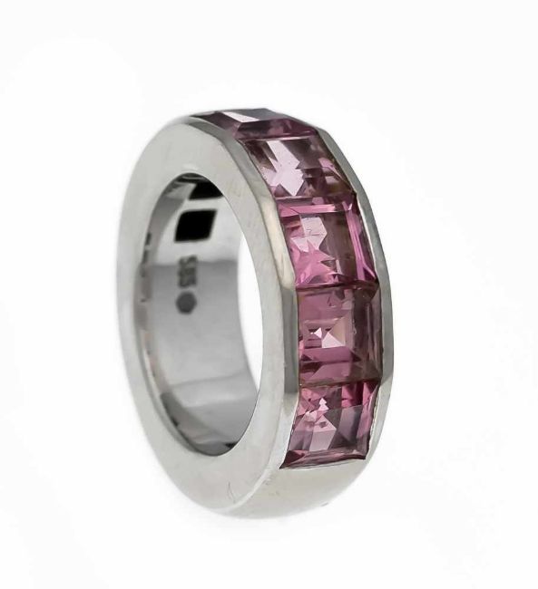 Tourmaline Ring WG 585/000 with 5 square fac. Pink Tourmaline 7 mm, RG 55, 16.7 g