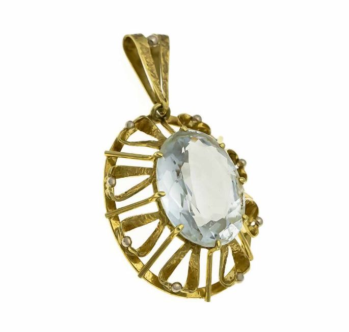 Aquamarine pendant GG 585/000 with an oval fac. Aquamarine 20.5 x 15 mm, L. 48 mm, 9.3 g,