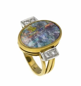 Opal diamond ring GG / WG 750/000 with an oval matrix opal 17 x 12 mm and 4 brilliants,