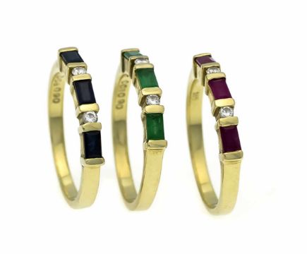 Multicolor ring set GG 585/000 3 rings, each with 3 in emerald cut fac. Rubies, emeralds