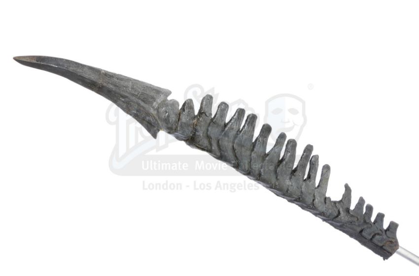 A xenomorph SFX insert puncture tail tip from Paul W.S. Anderson's sci-fi action film AVP: Alien vs. Predator. The xenomorph known as Grid (Tom Woodruff, Jr.) impaled a Yautja Predator with its powerful spiked tail.