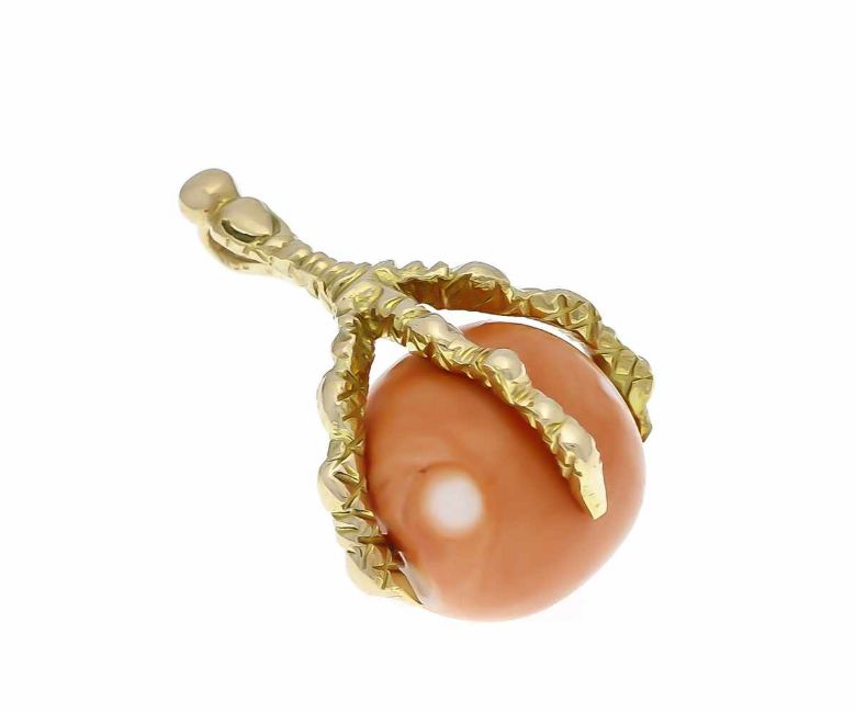 Coral Pendant GG 750/000 Representation of a chicken claw with a movable coral ball 15 mm,