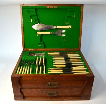 ussbaum gearbeiteter Unterkorpus mit pseudobarocker Schnitzreliefarbeit. Zwei Mitteltüren mit darüberliegendem Schubfach mit zwei Griffen, seitlich jeweils begleitet von einer Schwingtür und einem Schubfach. Aufsatz als zweitürige Vitrine mit bekrönendem Rocaillegiebel und Louis XVI-Ranken in plastischer Schnitzarbeit. Rest. (1221236) (1)