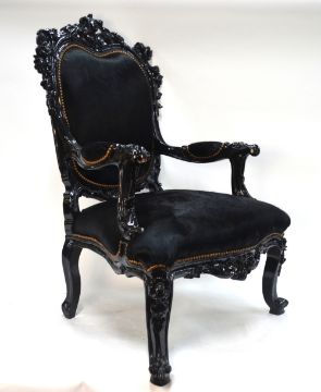 ussbaum gearbeiteter Unterkorpus mit pseudobarocker Schnitzreliefarbeit. Zwei Mitteltüren mit darüberliegendem Schubfach mit zwei Griffen, seitlich jeweils begleitet von einer Schwingtür und einem Schubfach. Aufsatz als zweitürige Vitrine mit bekrönendem Rocaillegiebel und Louis XVI-Ranken in plastischer Schnitzarbeit. Rest. (1221236) (1)